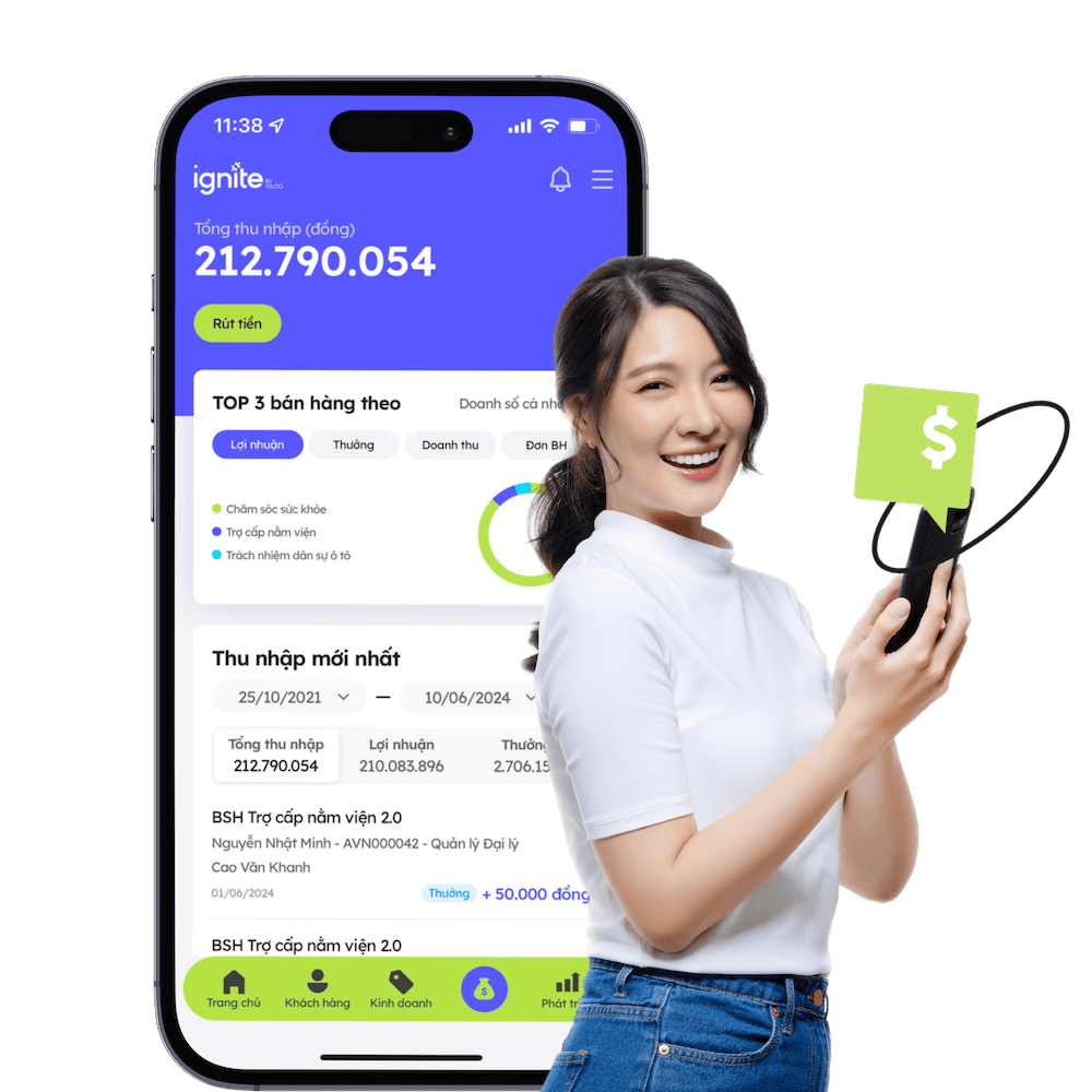 Thu nhập tại Ignite by Igloo không phải là một con số cố định. Chúng tôi không áp đặt doanh số bán hàng tối thiểu cũng như không giới hạn mức thu nhập tối đa với đối tác của mình. Bạn bán được càng nhiều sản phẩm bảo hiểm thì phí hoa hồng càng cao, đồng thời gia tăng cơ hội tiếp tục hợp tác và tạo ra thu nhập nhiều hơn.