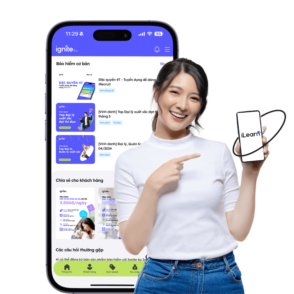 Ignite by Igloo là một nền tảng số, hỗ trợ toàn bộ hành trình bán bảo hiểm bao gồm: tìm hiểu và so sánh thông tin sản phẩm, thanh toán phí bảo hiểm và quản lý hoa hồng, quản lý đội nhóm, cũng như tương tác & quản lý khách hàng hiệu quả.